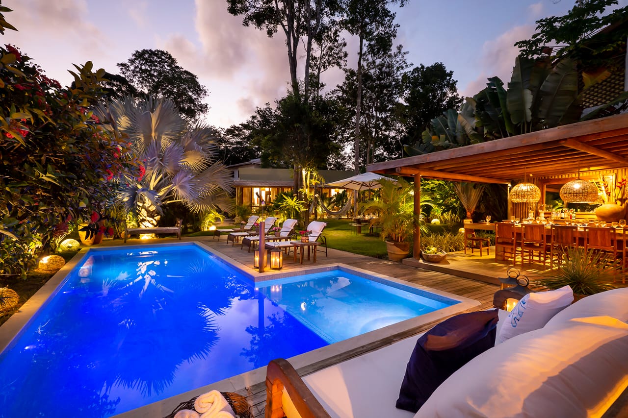 principais praias de Trancoso, a Casa 13 oferece um refúgio exclusivo e luxuoso com 700m² de área total, sendo 397m² de construção. Este espaço é ideal para quem busca conforto, privacidade e uma estadia inesquecível na charmosa Trancoso.
